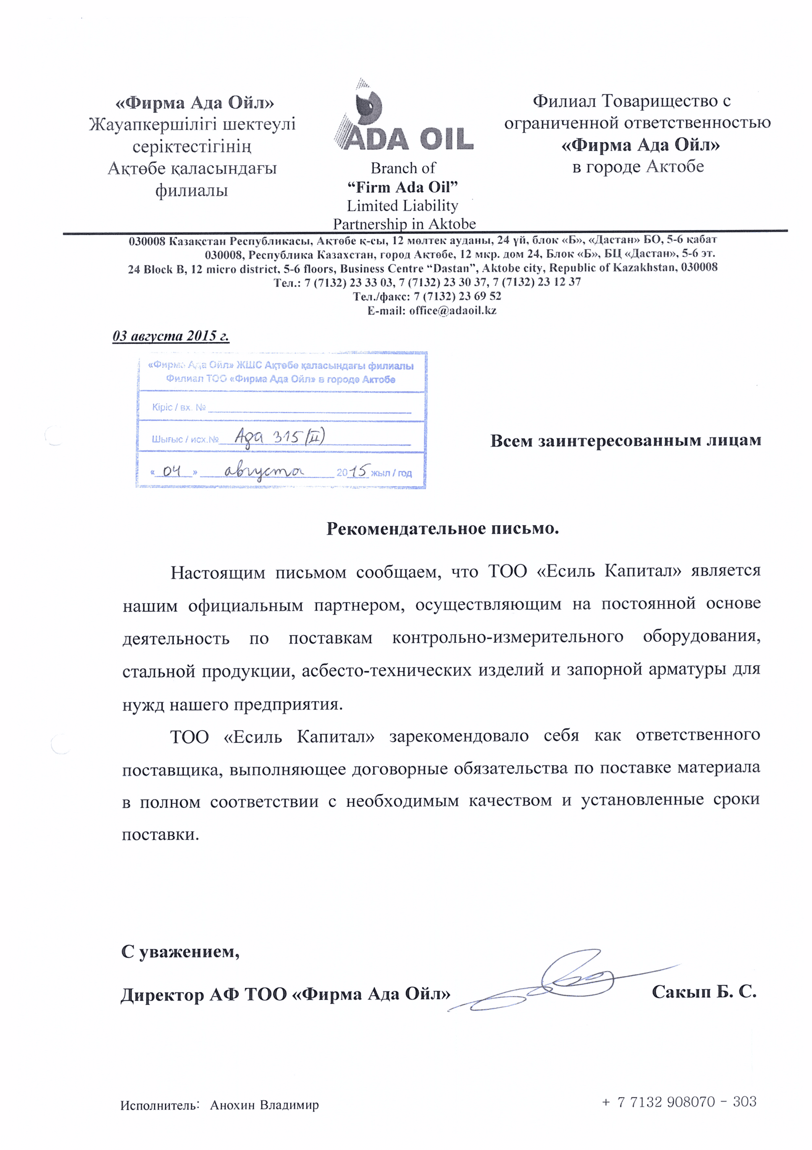 Our representative offices are open in all major cities. The office in Uralsk-West Kazakhstan was the first and is the head office.